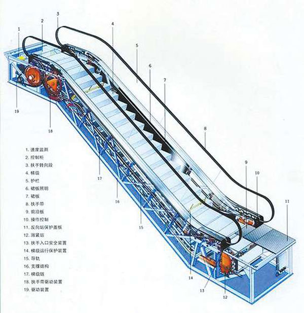 利用沿固定線路運(yùn)行的梯級(踏步),進(jìn)行升降或者平行運(yùn)送人、貨物的機(jī)電設(shè)備