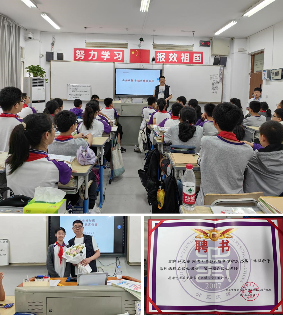 2023年6月1日受重慶市魯能巴蜀中學(xué)校邀請(qǐng),我司技術(shù)總監(jiān)林文茂進(jìn)校開展電梯安全講座。