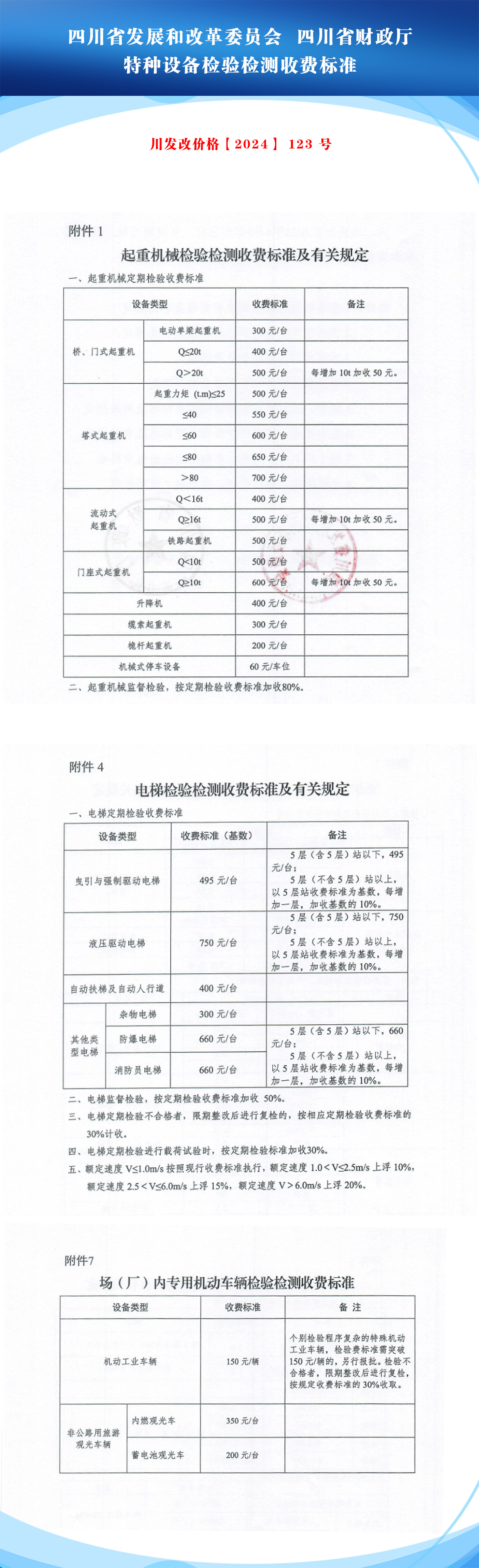 關(guān)于特種設(shè)備檢驗檢測收費(fèi)標(biāo)準(zhǔn)的通知