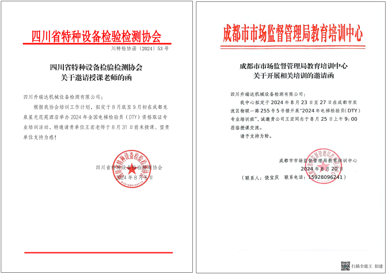 ? ? ? ? 近日,升瑞達(dá)檢驗(yàn)師王宏老師,憑借其卓越的專業(yè)素養(yǎng)和深厚的技術(shù)功底,受到川內(nèi)兩大權(quán)威機(jī)構(gòu)的盛情邀請(qǐng),分別參與了四川省特種設(shè)備檢驗(yàn)檢測(cè)協(xié)會(huì)舉辦的2024年全國(guó)電梯檢驗(yàn)員(DTY)資格取證專業(yè)培訓(xùn)活動(dòng)授課,以及成都市市場(chǎng)監(jiān)督管理局教育培訓(xùn)中心開展的 “2024 年電梯檢驗(yàn)員 (DTY) 專業(yè)培訓(xùn)班” 授課。