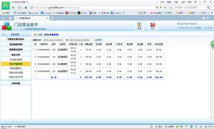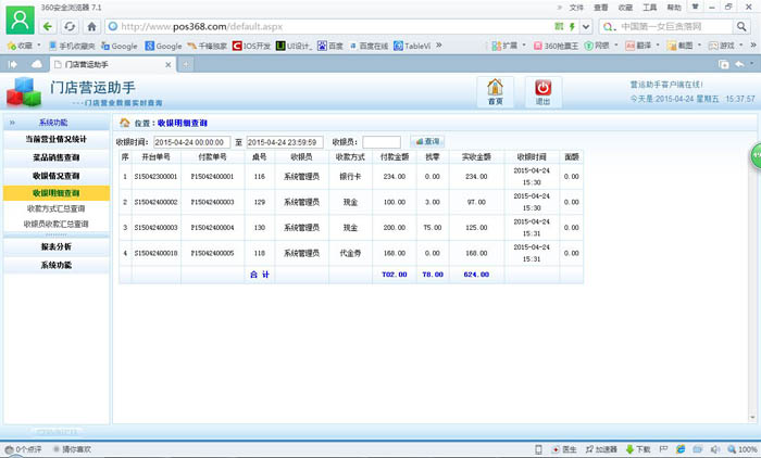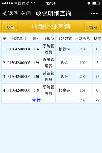 收銀報(bào)表:收銀員收款匯總查詢(xún)、收款方式匯總、收銀明細(xì)